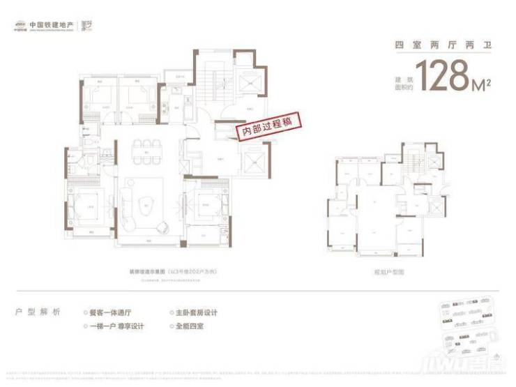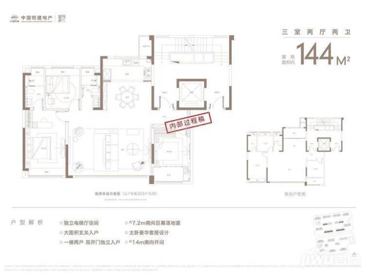 作为央企中铁建高端花语系产品,花语江南是高分竞品质,设计了高标准的公建化外立面,部分户型南向有超50%的窗墙比,超42%的幕墙占比,大面积玻璃应用,展现高端改善住宅的质感,另外还有全景落地窗设计,配合LDKB一体化设计,让居住空间,观景视野更加开阔,采光与日照条件好,社区园林规划有两轴十二境,景观丰富,错落有致,兼具居住的舒适性与私密性。