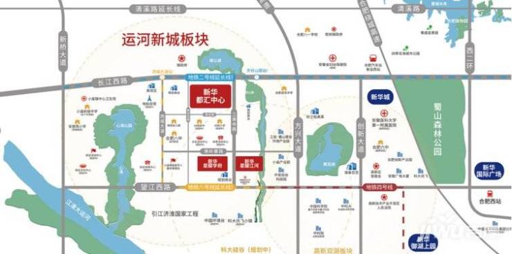 2022年6月的合肥土拍中,新华成功竞得蜀山SS202207号地块,成交单价960万/亩,总价64818万元,楼面价7200元/㎡,溢价率14.3%,项目案名为新华星耀江河,具体位于蜀山区三乘寺路以东、佛岭寨路以南,位居于蜀山运河新城板块核芯居住区,是新华在运河的四子之一。