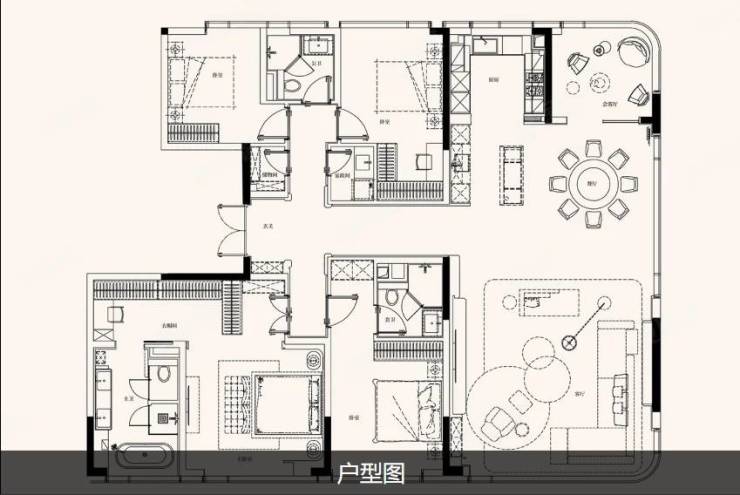200m²的户型是四房两厅三卫,设计精良。玄关处设有一个储藏室,方便收纳杂物。两个卧室配备了独立卫生间,主卧和长辈房更是贴心地配置了衣帽间,提高了居住舒适度。240m²的户型同样是四室两厅两卫,玄关处还额外设计了一个家政间,方便家务整合。此外,会客厅的设置也为业务需求提供了更多可能性。300m²的户型则是五室三厅四卫,其中四个卧室加了一个书房,三个卧室均配有套卫。整体布局上,生活区和居住区得到了合理的划分,动静分明,为居住者带来更多便利和舒适。