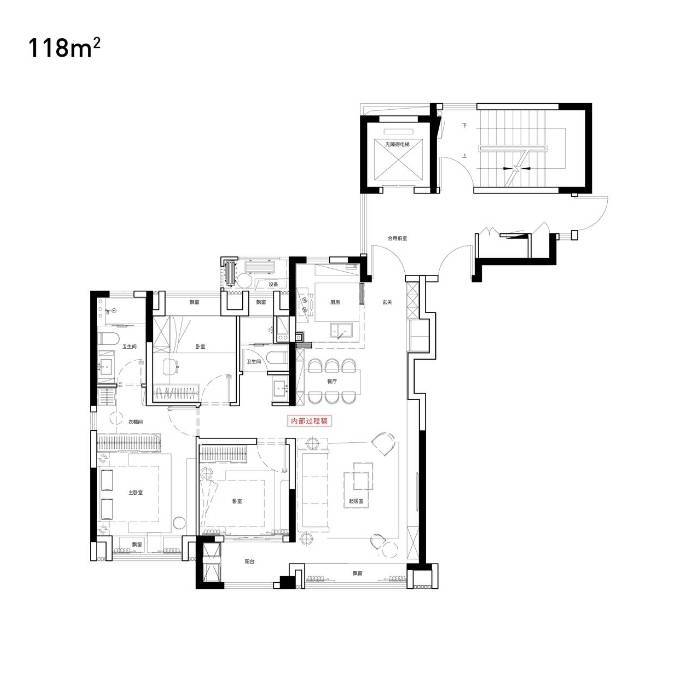 厨房采用 U 型设计,操作空间宽敞,洗切炒动线合理,预留了双开门冰箱、洗碗机、烤箱等家电位置,满足科创家庭多样化的烹饪需求。餐厅面积约 10㎡,可容纳 8 人餐桌,适合家庭聚会或亲友宴请,餐厅与横厅相连,形成开阔的公共空间,视觉效果更通透。此外,厨房旁还配备了约 3㎡的家政间,可放置洗衣机、烘干机、杂物柜等,保持室内整洁。该户型南北通透,通风效果极佳,动静分区合理,空间利用率高,既能满足多人口家庭的居住需求,又能兼顾办公、会客等多元功能,是成熟科创人才改善居住品质的理想选择。