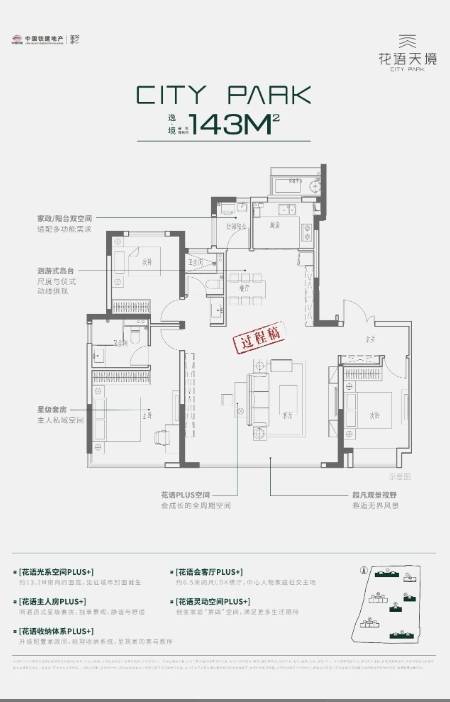 143㎡的小高层及洋房户型是项目的主力产品,采用1梯1户的独立入户厅设计,可以打造一排鞋柜和收纳柜,6.5米超大横厅落地窗和主卧转角落地窗设计,为居室增加了通透感。此外,还设置了独立的家政空间,可以放置洗手池、洗衣机、烘干机,方便家庭日常生活。采用LDKB布局,打通客厅、餐厅、厨房、阳台之间的区隔,让整个空间更加通透流畅,为居住者提供更为舒适便利的生活场所。