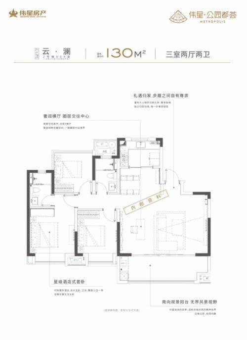 伟星公园都荟项目整体规划拟建11栋住宅,1.8的容积率,绿化率40%,规划户型面积段97-130平,可满足刚需、改善不同群体置业居住需求。项目楼盘品质表现也不错,例如以石材与金属的实景大门,采用简约的建筑风格,搭配宽景玻璃,以及横向线条,让建筑视觉上更加通透,打造美学建筑外立面,屹立城市品质封面。