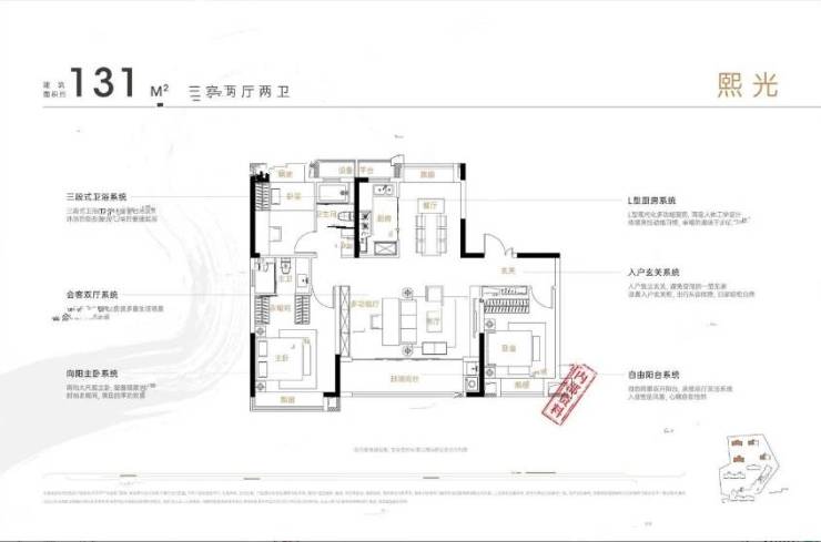 弘泰熙湖澜悦提供131m²、141m²及160m²三种户型,均为三室两厅两卫。131m²户型客厅设多功能区,三段式卫浴,双南卧采光好。141m²户型厨房调整,客厅、主卫增大,飘窗朝北。160m²户型中西厨结合,套房主卧,南北通透,采光优越,适合改善需求。