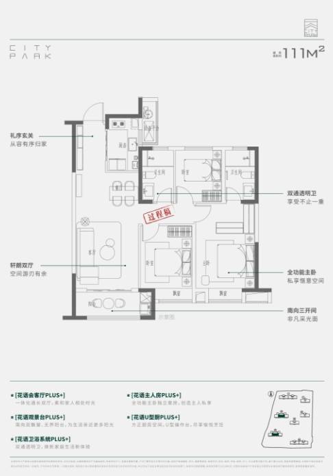在大高层中,111㎡的中间户型备受青睐。该户型拥有3室2厅1厨2卫,主卧还配有衣帽间,同时配备阳台落地窗及飘窗,带来充足的采光和通风。