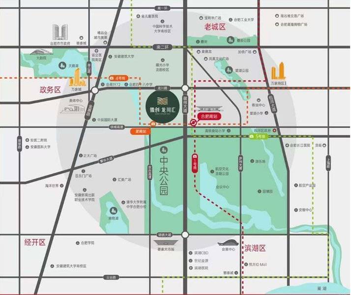 徽创龙川汇项目地理位置优越,临近合肥南站,交通便捷。小区楼下就是地铁四号线淝南站,方便居民出行。此外,项目还临近骆岗中央公园,作为“一核四心”重要一核之一,骆岗公园的规划建设将为周边地段增值,吸引更多人群前来居住。周边教育资源丰富,有多所学校包括幼儿园、小学和中学,为孩子提供良好的学习环境。商业配套也十分完善,项目周边有多个成熟商圈,购物便利。另外,项目旁边有公园,适合居民日常散步健身。
