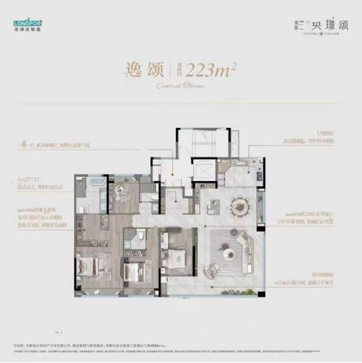 龙湖亚伦央璟颂提供了多样的户型选择,满足不同家庭的需求。建筑面积约143-223㎡的低密洋房大平层,私梯入户设计让业主尽享尊贵生活。270度环幕视野,让业主在家中就能欣赏城市的繁华与美丽。