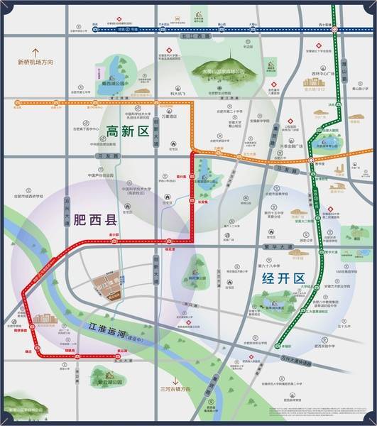 肥西引江佳园位于岳小河路与汤口路交口西北角,靠近华南城与高新区,临近地铁四号线南延线金小郢站,交通便捷。附近有繁华大道、方兴大道、汤口路、江淮大道等主干道,前往高新、肥西主城、经开等地方便利。商业配套丰富,临近华南城、华盛奥特莱斯,高新区商业设施完善,项目自身也有代建商业,购物便利。此外,项目还设有代建幼儿园,周边还有多所学校,满足日常基本需求。