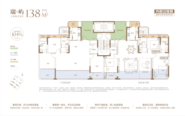 位于合肥瑶海区的鸿瑞府项目,坐落于敬亭山路与站前路的交汇处,总建筑面积达9.57万平方米,项目包含7栋17层和1栋13层的小高层以及1栋25层的大高层住宅,共计471户。作为瑶海主城区首个新计容产品,鸿瑞府的实际使用率高达104%。住宅户型从129平方米到138平方米的小高层到182平方米的宽幕平层,充分满足了不同家庭的需求。