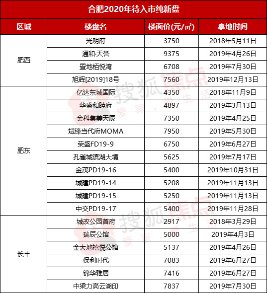 据搜小狐不完全统计,2020年合肥楼市将有41个纯新盘入市。各位网友可以根据自己的情况先选择区域再看具体的楼盘情况。