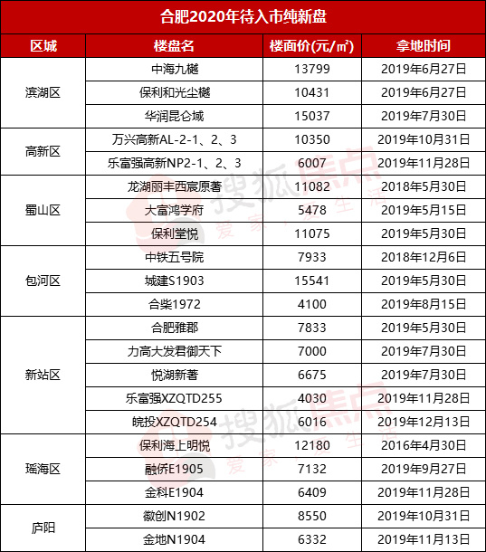 2020年合肥主城区共有21家纯新盘将入市,其中,新站区5盘,滨湖区、蜀山区、包河区、瑶海区各3盘,高新区、庐阳区各2盘。