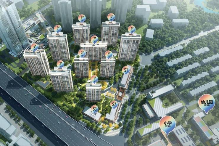 共规划4栋小高层和6栋大高层,并代建一所36班小学和一所12班幼儿园,另外还有一栋写字楼和部分商业。