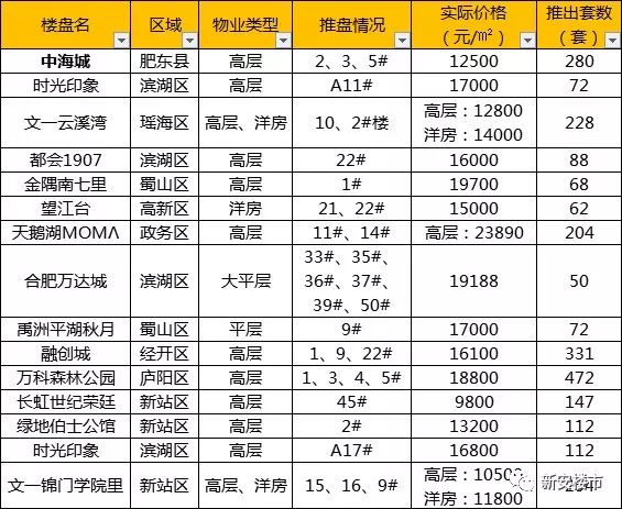 例如中环庐阳府、和顺叶语溪、城建琥珀东华府、新城合肥大都会、旭辉公园府、琥珀御宾府等分别位于庐阳、瑶海、滨湖、新站以及肥西片区。