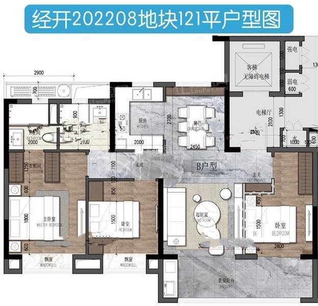 在105㎡户型的基础上,118㎡户型主卧配备独立卫生间及挑高双景阳台,增加了空间的舒适感和采光效果。布局合理,设计精巧,是家庭居住的理想选择。