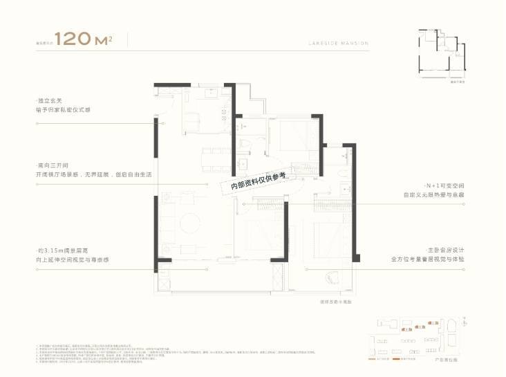 152㎡户型同样是三室两厅两卫一厨的设计,相比于120㎡户型,空间更为宽敞。该户型采用了u型厨房设计,实现了客餐厅的一体化,让生活更加便捷。此外,主卧室还可设置衣帽间,并且配有景观阳台,让居住者可以尽情享受户外风景。