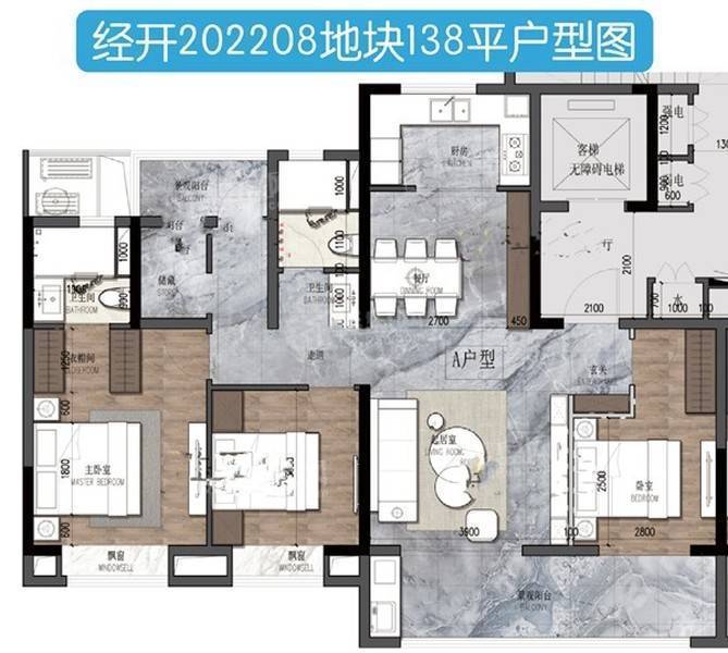 138平方米的三室两厅两卫户型设计考究,巧妙实用。卫生间采用明卫设计,干湿分离,主卧与次卧采光通风都不错,为家庭提供了宽敞舒适的居住空间。
