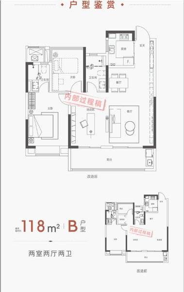 项目采用人车分流设计,保障居民安全和生活质量。不同户型满足居民需求,功能区域明确,设计合理。105㎡两室两厅两卫户型方正,布局紧凑;118㎡两室两厅两卫户型在此基础上增加独立卫生间及挑高双景阳台;138㎡三室两厅两卫布局巧妙实用,采光通风良好。
