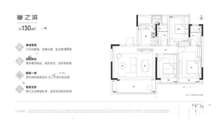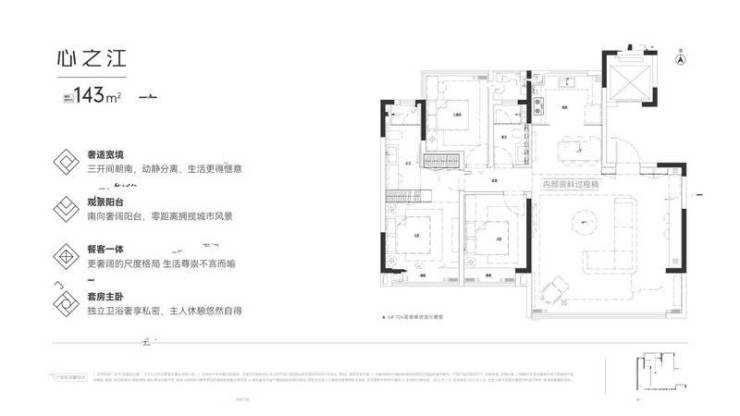 主力户型109-190m²,109m²为三室两厅一卫,南北通风,主卧配备大阳台,客厅和次卧的阳台相连,采光良好。而143m²户型为三室两厅两卫,主卧配卫生间,客餐厅相连,朝南的卧室都配了飘窗,整体面宽,空间布局合理。