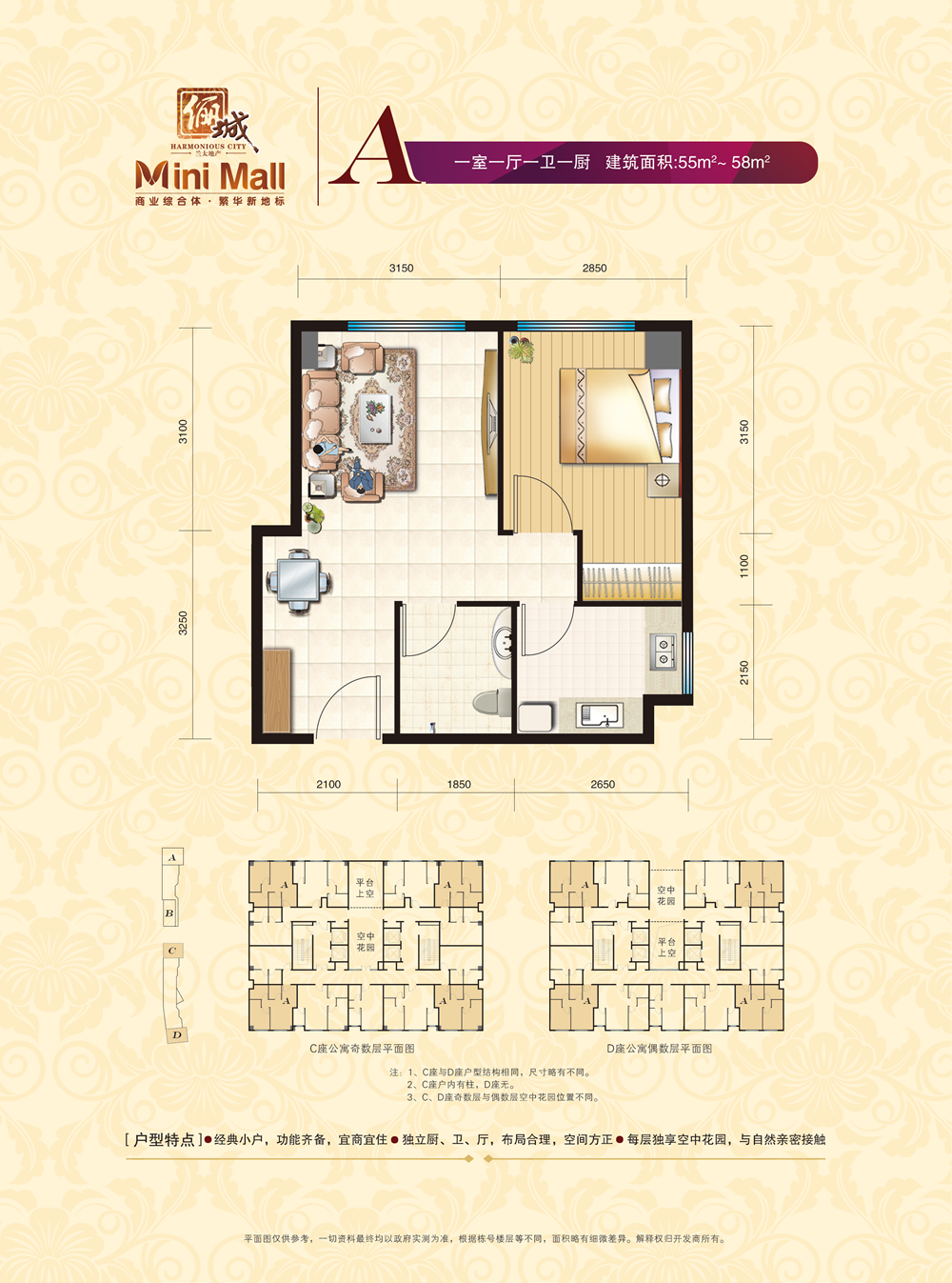 44万/套 建面58m²