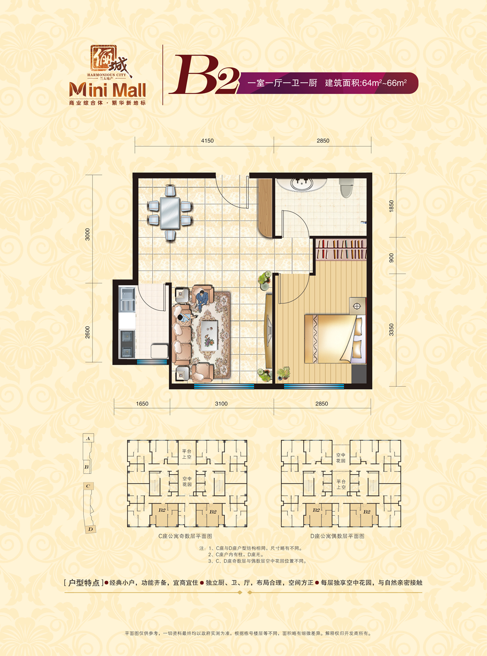 50万/套 建面66m²