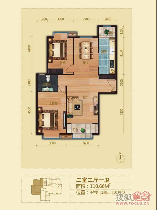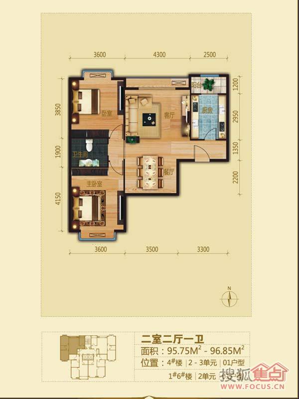 2室2厅1卫-4#2-3单元1户型1#6#2单元1