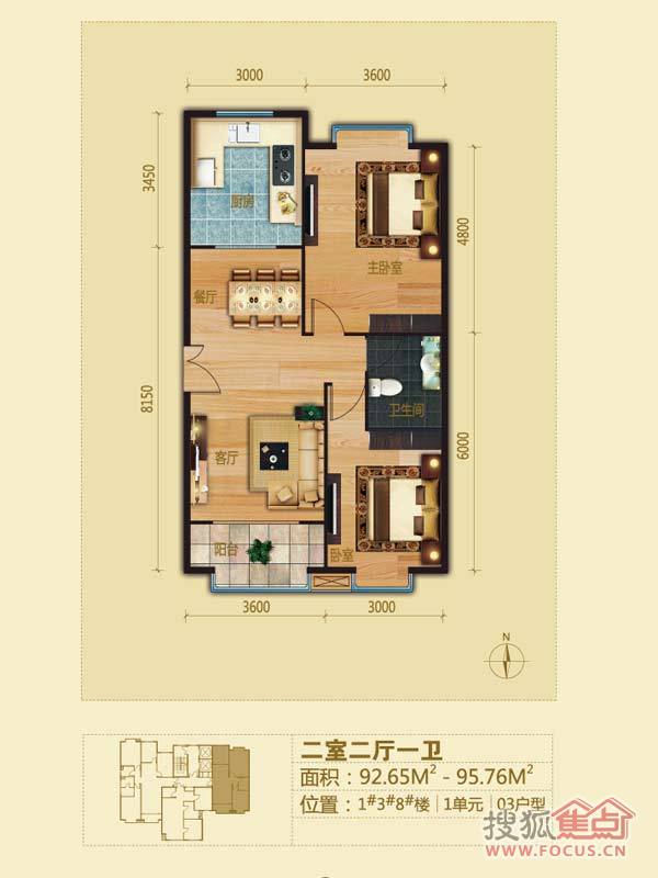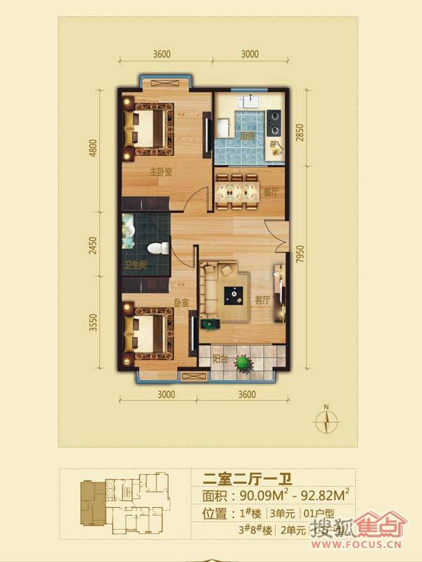 2室2厅1卫-1#3单元1户型3#8#2单元1户型