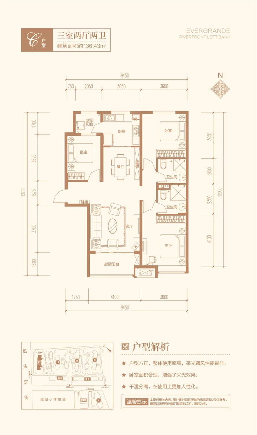 150万/套 建面136.43m²