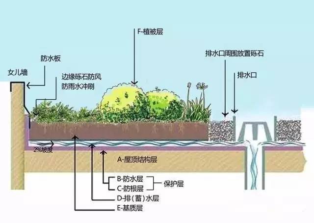 在设计方案中,所有院子的混凝板都是下沉板上翻梁,就像卫生间的结构一样。下沉板有60cm左右深度,也就是说可以回填土60cm厚,在靠墙栽种大树的地方还可做一个向上50cm的树池,这样,在靠墙的地方便有1米多深的覆土,即可以栽种4-5米高的树,并将树干固定在墙上,以防大风将树刮倒或使其摇晃,在其它不靠墙的地方才栽种1-2米的低矮植物、果树或灌木!这样,整个庭院的花草树木便显得错落有致,任何大风也没问题。