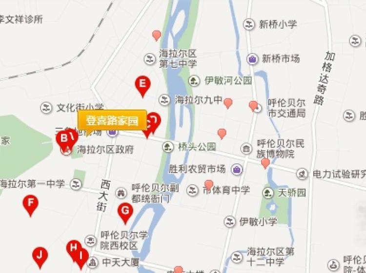 登喜路家园位于伊敏路与瑟宾街交汇处,是一处包含高层、商业综合体的大型房产项目。