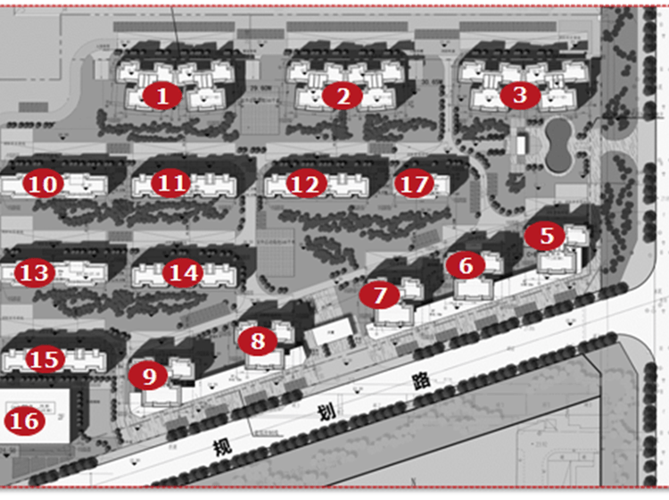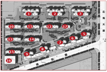 整个项目占地378亩,约80万方,分三期开发,目前在售的一期总占地103亩,总建面22万方,容积率2.5,绿化率45%,由15栋住宅(其中高层8栋22-25层,类洋房7栋16-17层)、一栋幼儿园和商业街组成。高层的首层均为底商或架空层,类洋房的首层为底复豪宅,共计1458户,车位1468个。