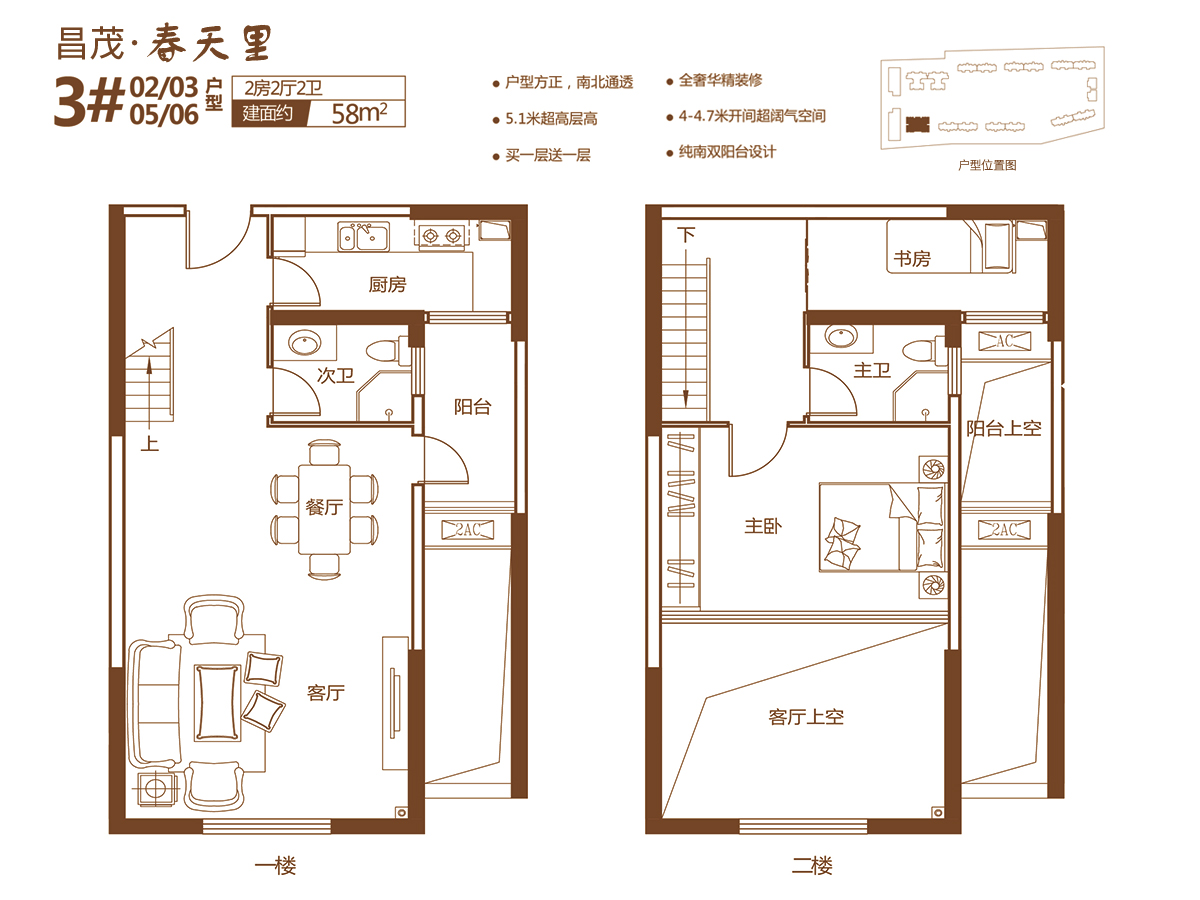 2室2厅2卫-58㎡(建面)两房两厅两卫