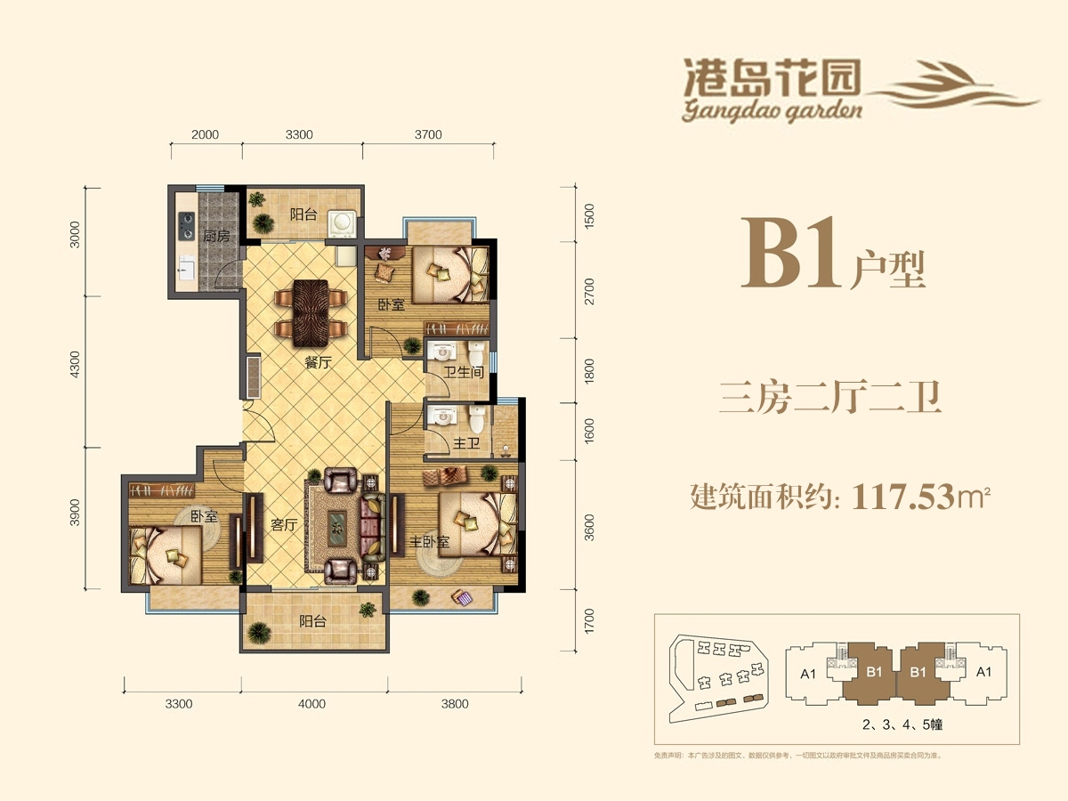 3室2厅2卫-B1户型建面约117.35㎡三房两厅两卫