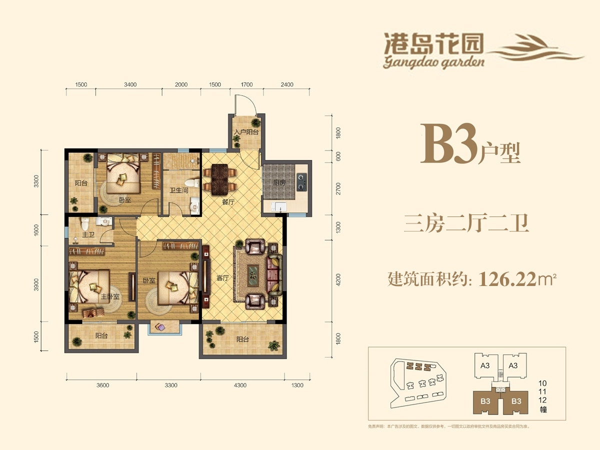 3室2厅2卫-B3户型建面约126.22㎡三房两厅两卫