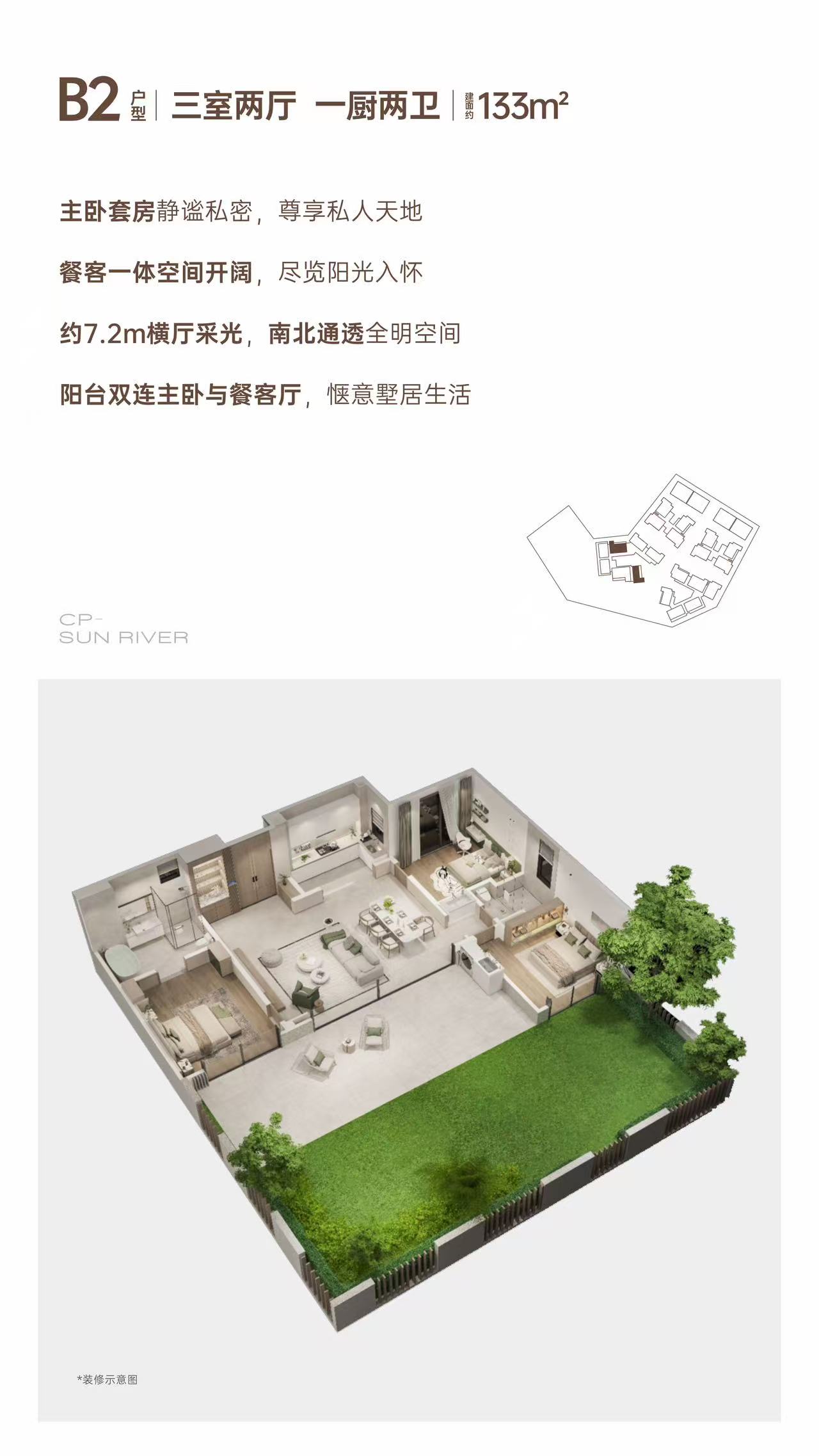 3室2厅2卫-B2三室两厅一厨两卫 133m²