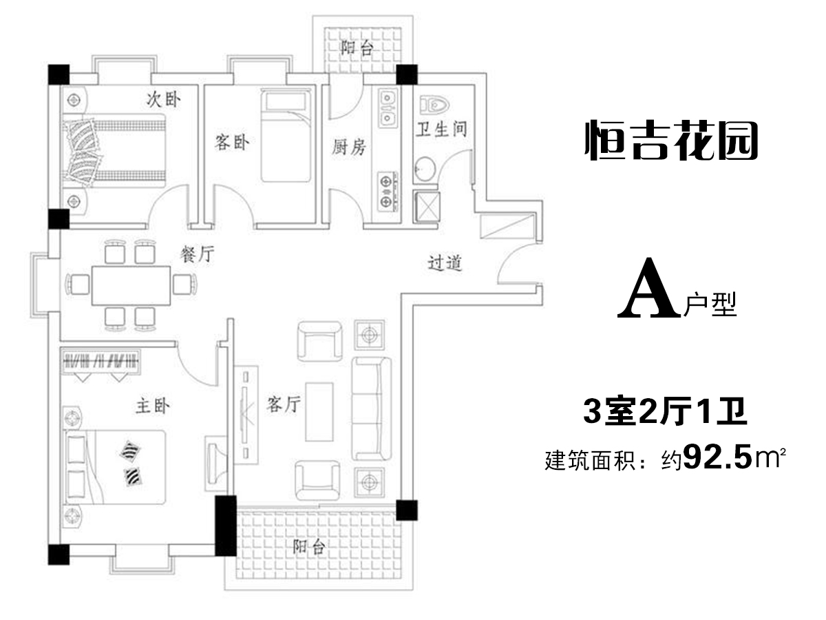 恒吉花园总占地面积约37554.2平米,由一座五层综合楼、六座十五层商住楼、两座十六层商住楼和10座6+1住宅组成。恒吉花园公寓楼为一梯三户,户型有一房、两房、三房的,建筑面积从53.8-92.5平米不等。恒吉花园户型布局紧凑合理,南北通风,明厨明卫,大飘窗,让您坐拥舒适的生活。