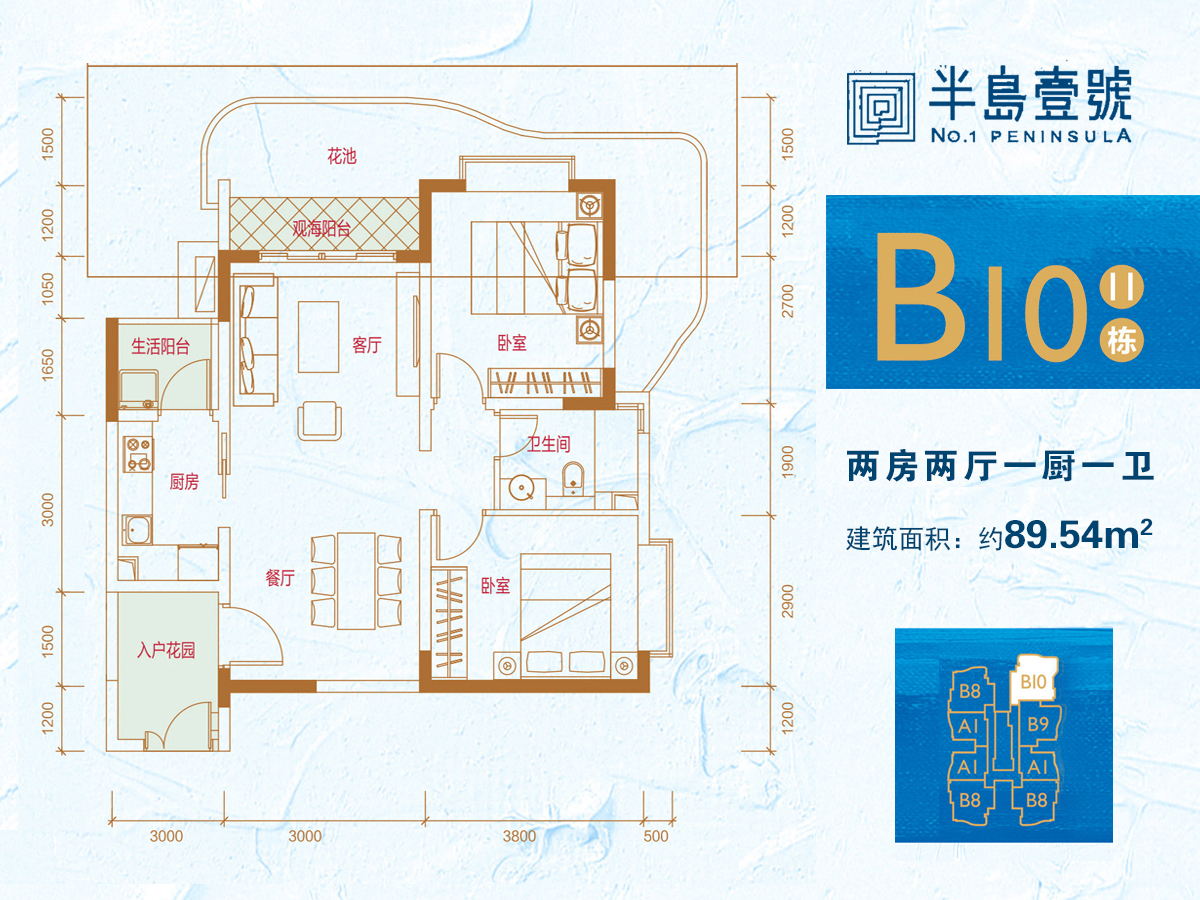 2室2厅1卫-B10户型 建面约89平 两房两厅