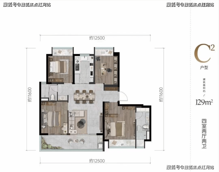 3、产品:2梯2户,电梯独立入户,105-143平米户型,均为大三房以及大四房产品;