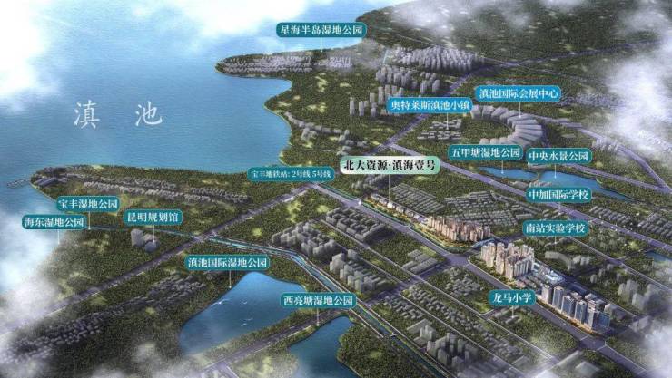 项目雄踞滇池三个半岛核心区域,占据昆明环湖生态带最后的珍贵土地,与滇池仅咫尺之遥,拥有无可比拟的一线滇池景观资源 。推窗即见滇池浩渺碧波,周边海东湿地、王官湿地等多个生态湿地公园环绕,宛如天然的绿色屏障,负氧离子充沛,每一次呼吸都沁人心脾,在这里,您可以尽情享受大自然的馈赠,感受四季更迭的美景,让身心沉浸在滇池的诗意与浪漫之中。