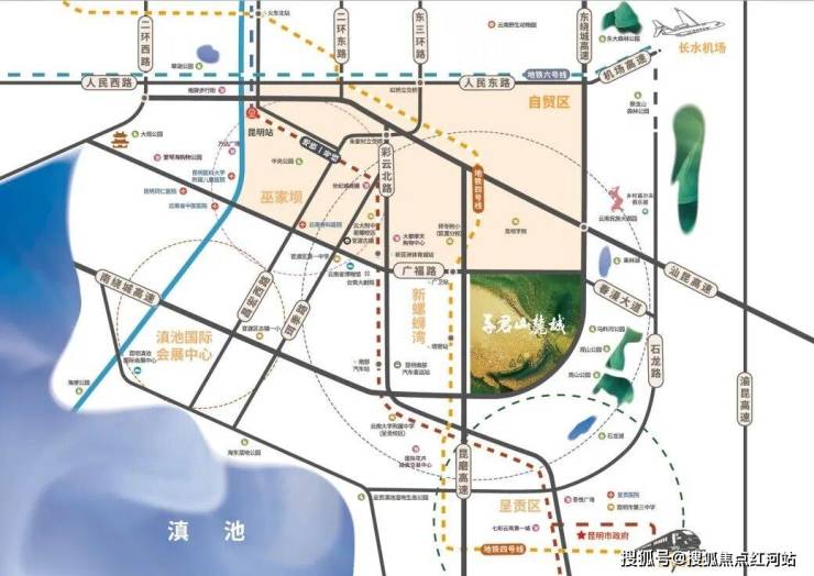 子君山麓城紧邻地铁 4 号线广卫站,步行 2 公里就能搭乘地铁,轻松穿梭于城市各个角落。广福路、昆玉高速等主干道环绕,自驾出门就能快速通达全城。周末想出去旅行,25 分钟就能到长水机场,30 分钟抵达昆明南站,说走就走的旅行,在这里变成了日常。