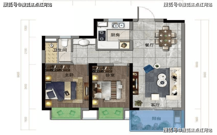 2.餐客厅一体,直面约6.3米宽景大阳台,视野更加开阔;