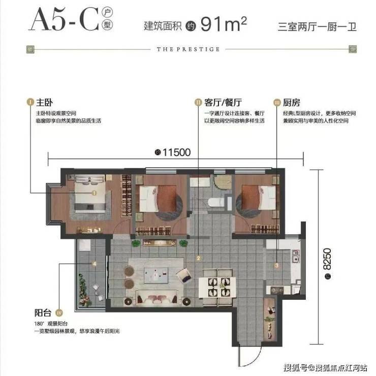 项目总建面50万方,绿化率40%,车位比1:0.88,A5地块在售4栋,主力户型91、101、125㎡,精装修交付(装标2000元/㎡),楼间距30-50米,户型设计方正,无浪费空间,公摊仅19%,打造高性价比全能人居。
