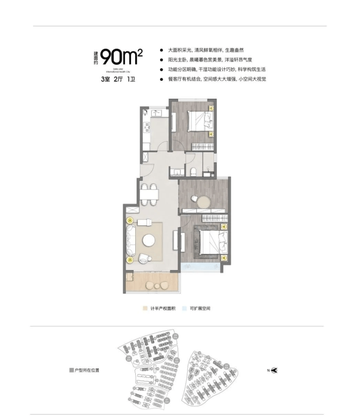 山重院89㎡半山洋房,带装修,高品质现房洋房,总层高6-8层,一梯两户,板式通透,产权面积89㎡,使用面积82平米左右,90%的超高得房率。