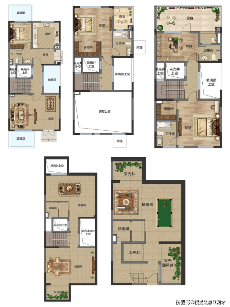 建面约361平的联排别墅通过拓展空间可实现约500平惊人使用率,约180平花园赠送堪称市场翘楚。约6.6米开间配合约14.2米进深,单层约94平空间可灵活改造为5-6个卧室,其中约35-45平总统套房级主卧配备专属卫浴与衣帽间,动线独立彰显大家风范。