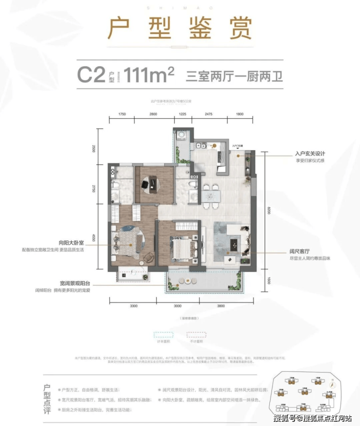 建面约111㎡三室两厅两卫:刚需爆款户型,高性价比之选