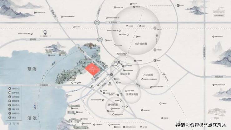 位于西山区草海东岸广福路与西福路交叉口,属草海高端宜居板块,一线临草海景观,生态资源优越。紧邻广福路主干道,衔接滇池度假区与主城核心,板块定位高端,是高端改善优选。