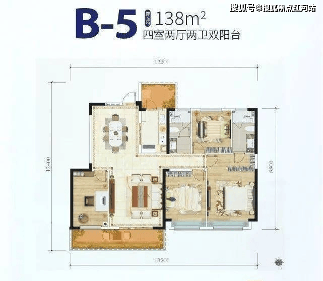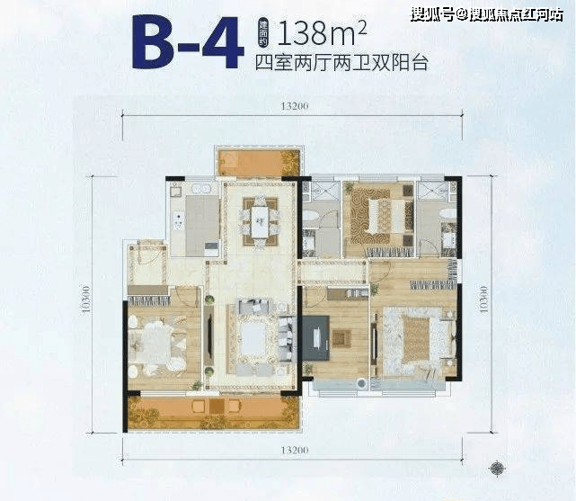 B4户型:约138㎡(4房2厅2卫)