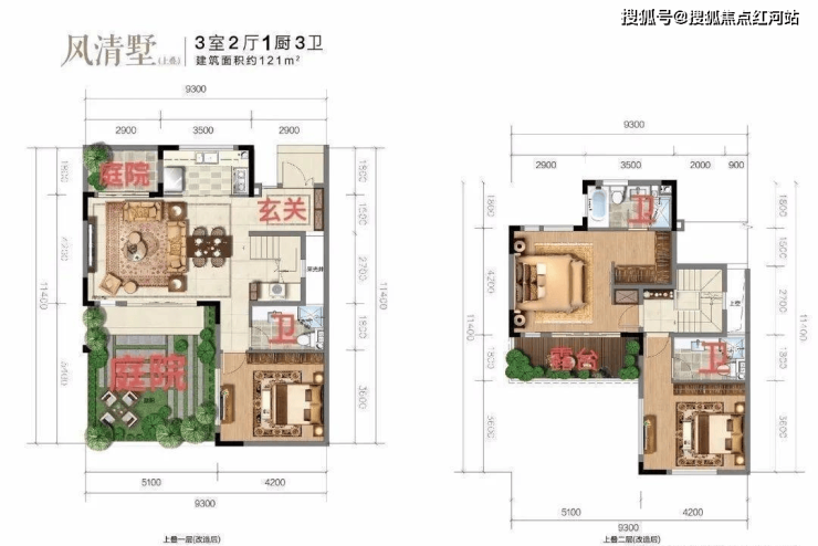 层高:一层3.3m,二层3m
