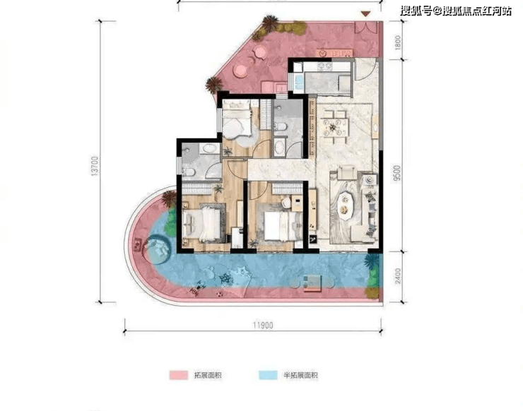 B户型:建面约88㎡;实得面积约124㎡