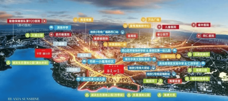 优质名校聚集:西山区七幼、书林一小福海校区、海贝中英文国际学校、滇池度假区实验中心&仁泽学校、西山区萃智御府学校&度假区第一幼儿园、滇池中学