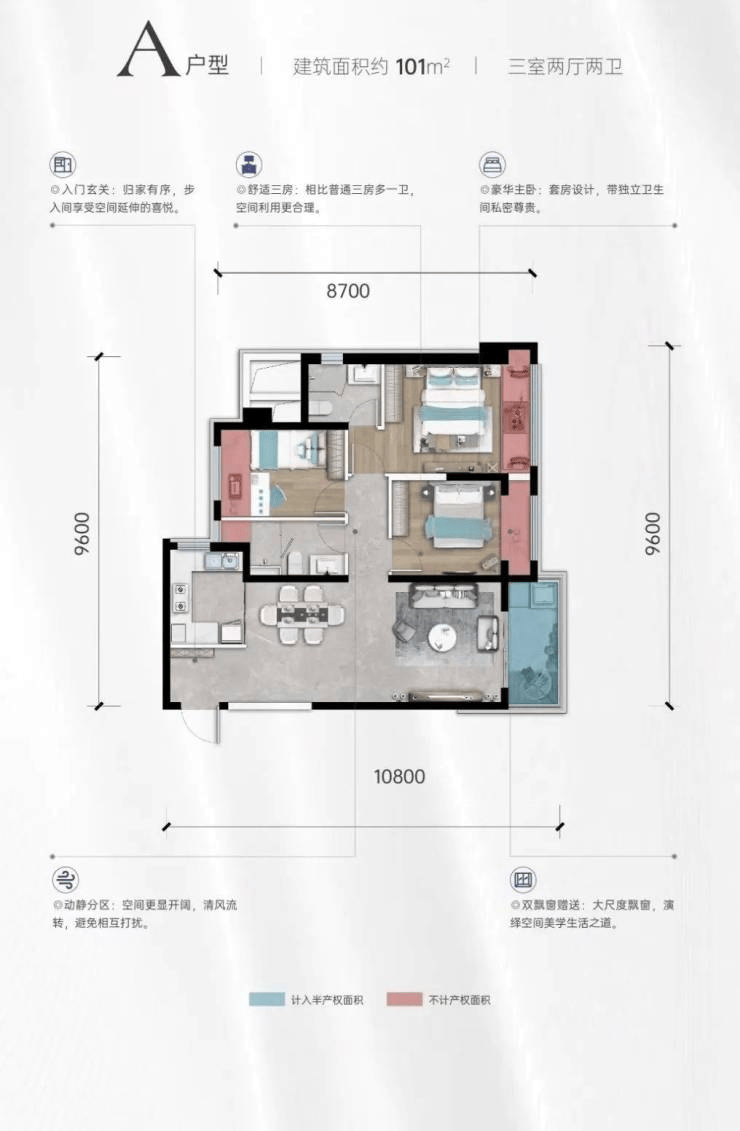 产品设计合理:住宅采用全点式的板楼平面,南北通透,社区交通采取人车分流,项目整体采用围合式布局设计,保证每栋住宅有较好的中庭景观视野。