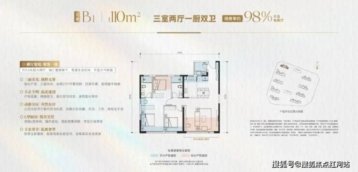 【星澜】建面约110㎡,得房率约98%, LDKB大方厅四室两厅双卫